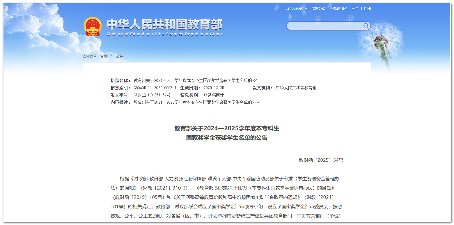 近日,教育部、人力资源社会保障部联合发布《关于2024—2025学年度中等职业教育国家奖学金获奖学生名单的公告》(教财函〔2026〕2号),我校8名学子光荣上榜,每人获奖6000元。